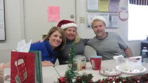 We are getting into the holiday spirit here at NAMI San Diego! Today Building Two had our Secret Santa gathering during lunch. It was such a great time. Everyone a couple weeks ago drew names out of a hat, and those that participate wrote on a sheet of paper three things on their wish list that were under $10. The table was beautifully decorated thanks to Nancy, and we listened to Christmas music as we gathered in the conference room.