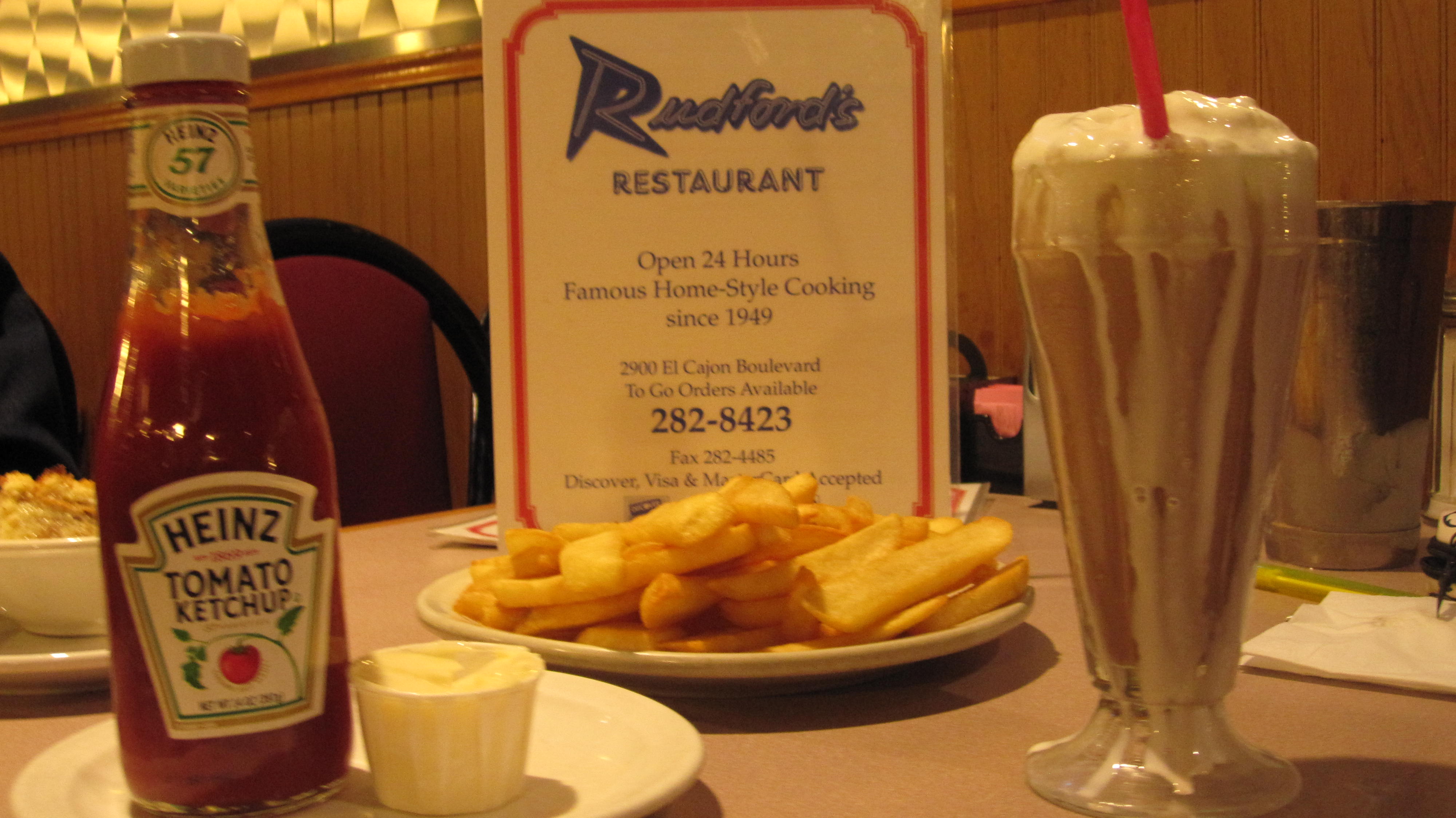 Over the weekend a couple friends here in San Diego kept me company, entertained me and even help keep my mind off of things. Bruce took me to see the Russian Ballet downtown at the Balboa Theater. Afterward we went to my favorite dive diner, Ruderfords for a chat. Here is what I had for a late night snack: