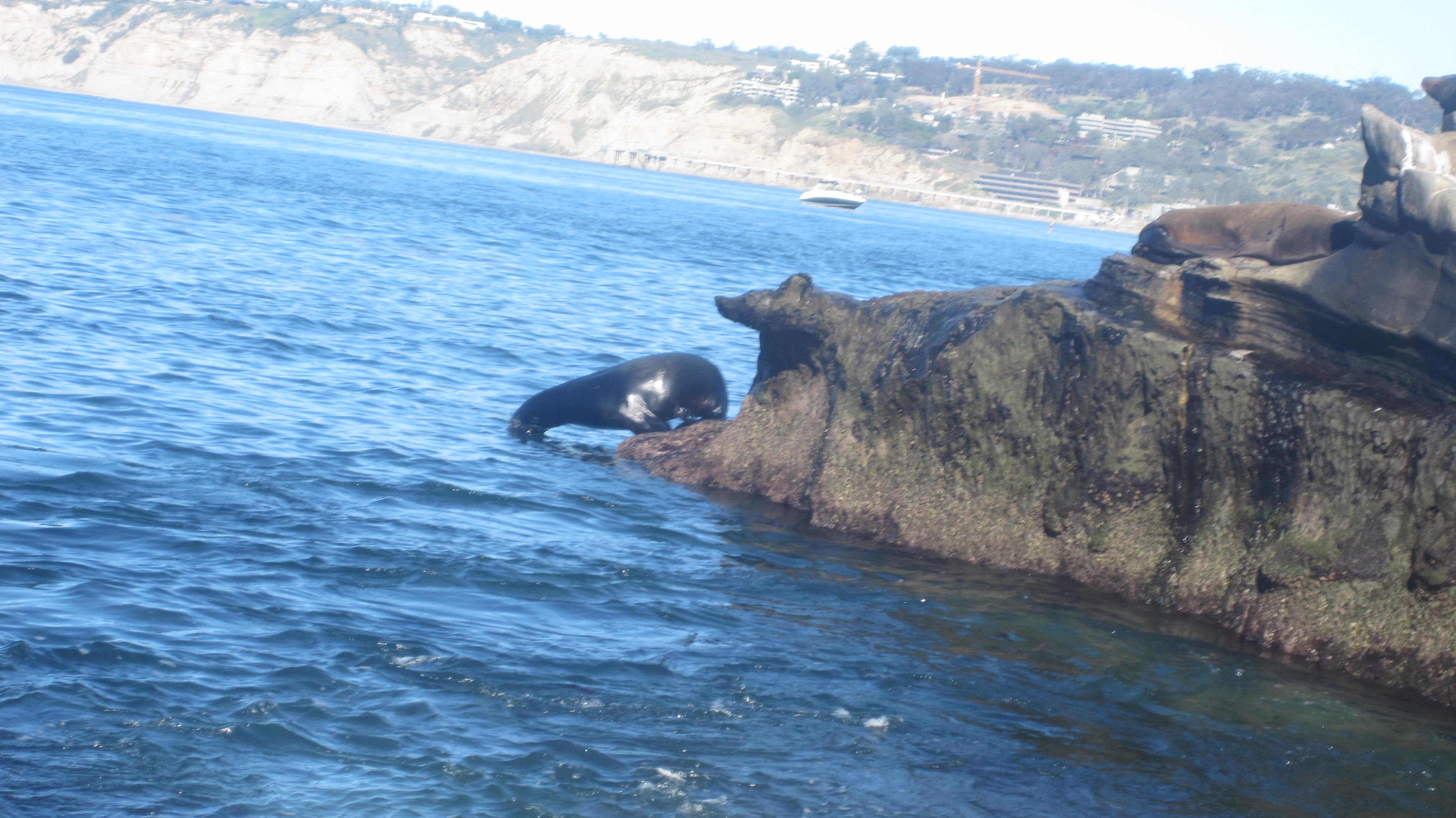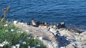 After a nice lunch we went out to the beach and grassy area to walk around. I wanted to go see the sea lions that were all perched on the rocks basking in the heat under the rays of sunlight.