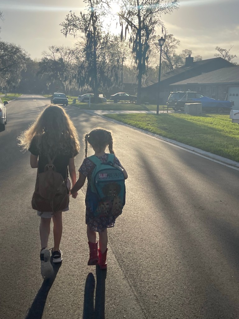 While my mom has been hospitalized, the girls and I have called her every morning on our walk to school. The girls I presume have been a bright spot in my mother’s day, a good distraction from her reality. As we walk, we talk, FaceTiming and the girls share with their Mimi all of the important things. Such as, hazels bright red cowboy boots that she insists wearing on the long walk, her pig tail braids, Ella recounts all of the excitement with school. Today and tomorrow we have had bad rain rolling through and are unable to walk in the morning to school with Mimi. Regardless, she asked me tonight if the girls could call her on their way to school. I could tell how much it meant to her. I agreed that we would call.