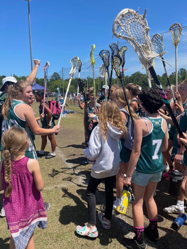 Coaching is something that comes easy to me. I love working one on one with youths involved in sports. It is such an important outlet socially. It provides a sense of leadership, teamwork, and confidence. I have watched these pre-teen girl laxers grow and excel at the sport. The most impactful part of volunteering as an assistant coach for the 14U girls program at Fleming Island Girls Lacrosse League—FIGLL—had to be not just their growth, but seeing their love and passion for this sport come alive. They poured their hearts out on the field every game, and were eager to learn. I hope to be involved in some way in the program next season. Many years ago I played. I fell in love with the goalkeeper position. I made it my own and played D1 briefly in Syracuse on a partial scholarship. After transferring to a smaller school, SMCM, I began my lengthy pieced together career if you will, as a coach. I went back to Ryken in 2005/2006 to assistant coach my old school girls lax program. While coaching in college part time, I began to appreciate my love of the sport from the sidelines. In 2006/2007 I coached a season as assistant coach of the North Carolina Wesleyan College (NCWC) girls lacrosse program. After that time, I fell backwards, spiraled actually. It took me years to find interest again in the things that I loved. When we moved to Jacksonville in 2020, I researched local lacrosse leagues in the area and was pleased to find some local recreational leagues and high school leagues. It is growing quickly, catching on like wild fire. After coming to the program in Spring 2022, I head coached the 12U beginner league. This year I assistant coached the 14U and 12 U girls leagues. Fast forward to last Sunday, the last game of the season.